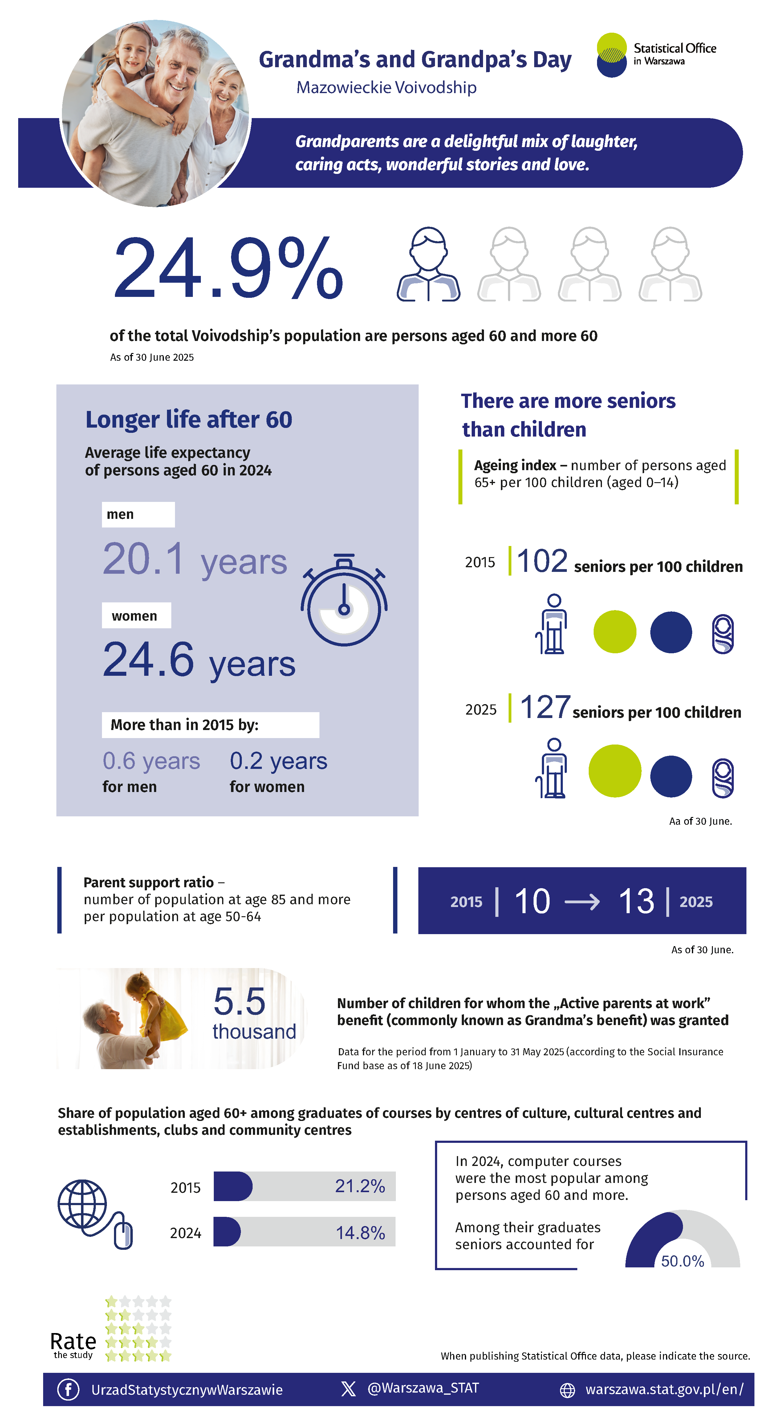 21 and 22 January. Grandma’s and Grandpa’s Day A A A 21.01.2026 Evaluate the study: Downloads 21 and 22 January. Grandma’s and Grandpa’s Day - data for Mazowieckie Voivodship 2.79 MB 21 and 22 January. Grandma’s and Grandpa’s Day - data for Warsaw 2.82 MB Archive 2023 21 and 22 January. Grandma’s and Grandpa’s Day 21 and 22 January. Grandma’s and Grandpa’s Day 2022 21 and 22 January. Grandma’s and Grandpa’s Day 2021 21/22 January - Grandma’s and Grandpa’s Day 2020 21/22 January - Grandma’s and Grandpa’s Day 2019 January 21/22 - GRANDMA’S AND GRANDPA’S DAY 2018 21st/22nd January - Grandparents Days