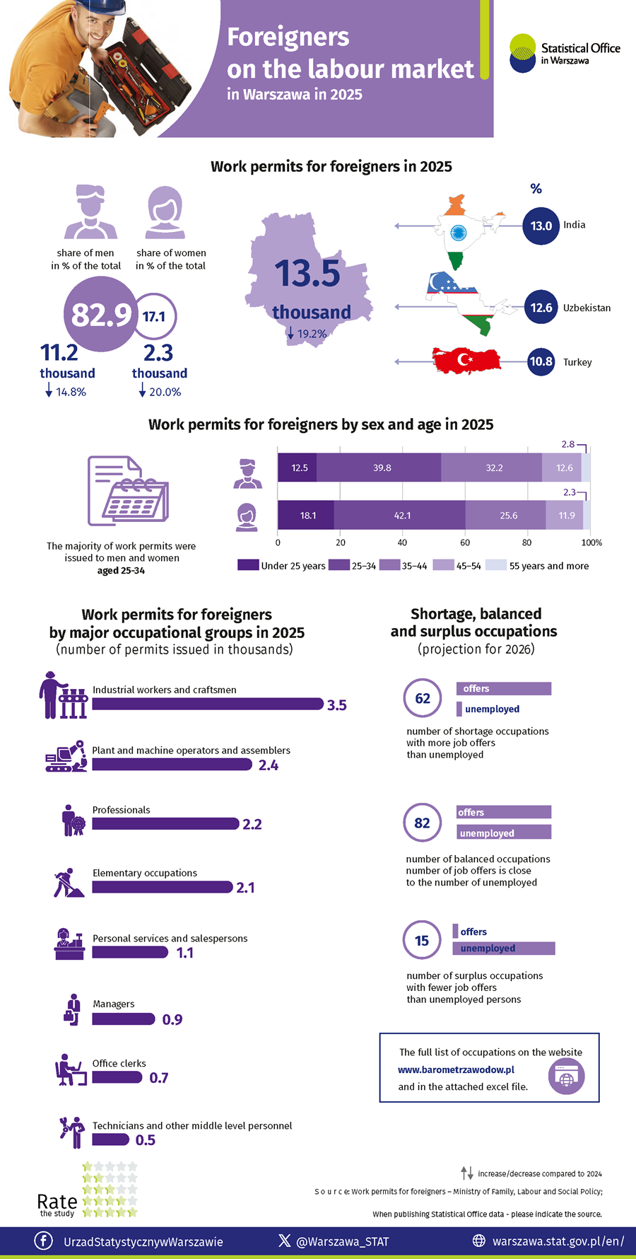 Foreigners on the labour market in Warszawa in 2025 A A A 23.03.2026 Evaluate the study: Downloads Foreigners on the labour market in Warszawa in 2025 1.49 MB Archive 2023 Foreigners on the labour market in Warszawa in 2024 Foreigners on the labour market in Warszawa in 2023 2022 Foreigners on the labour market in Warszawa in 2022 2021 Foreigners on the labour market in Warszawa in 2021