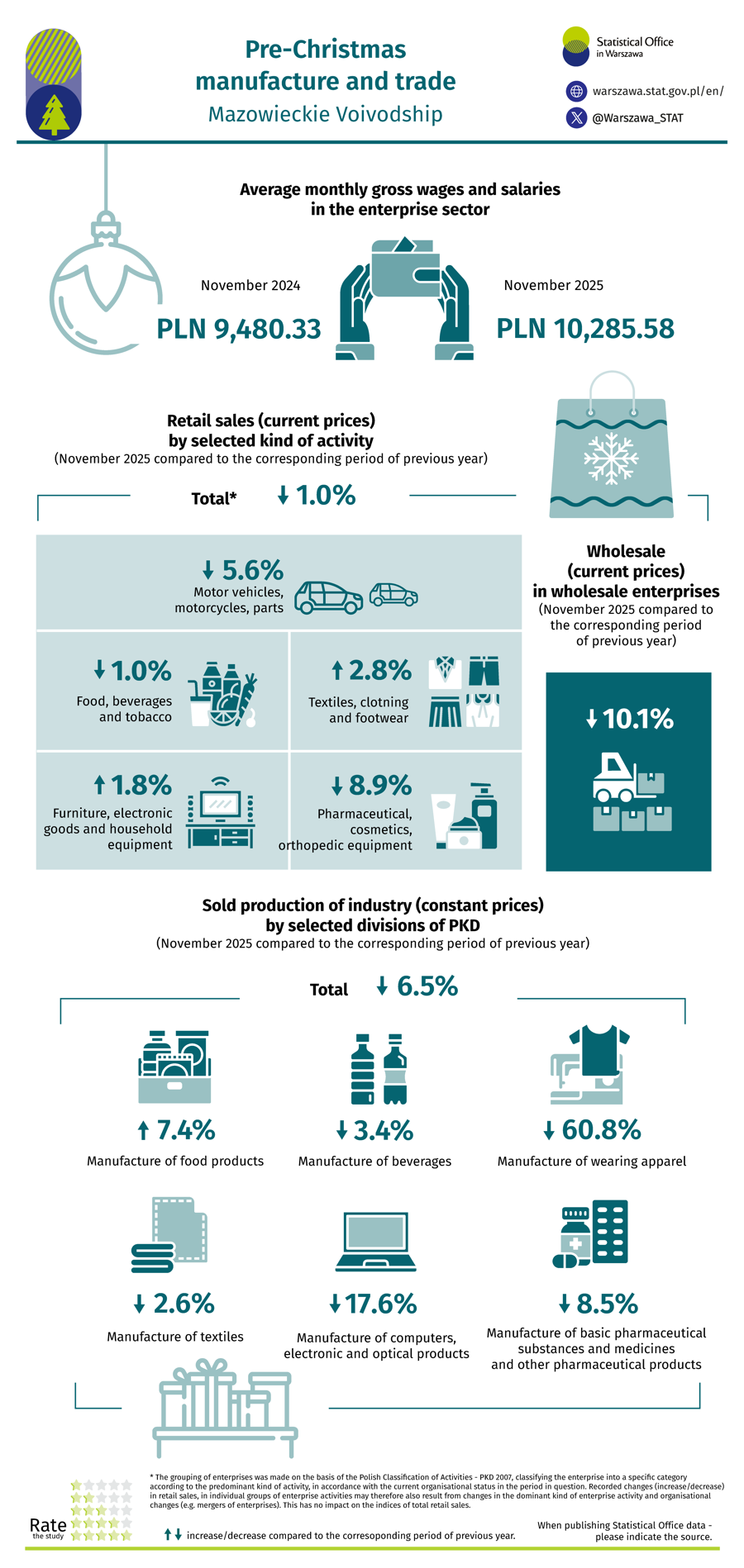 Pre-Christmas manufacture and trade A A A 23.12.2025 Evaluate the study: Downloads Pre-Christmas manufacture and trade - Mazowieckie Voivodship 1.40 MB Pre-Christmas manufacture and trade - Warsaw 1.41 MB Archive 2024 Pre-Christmas manufacture and trade 2023 Pre-Christmas manufacture and trade