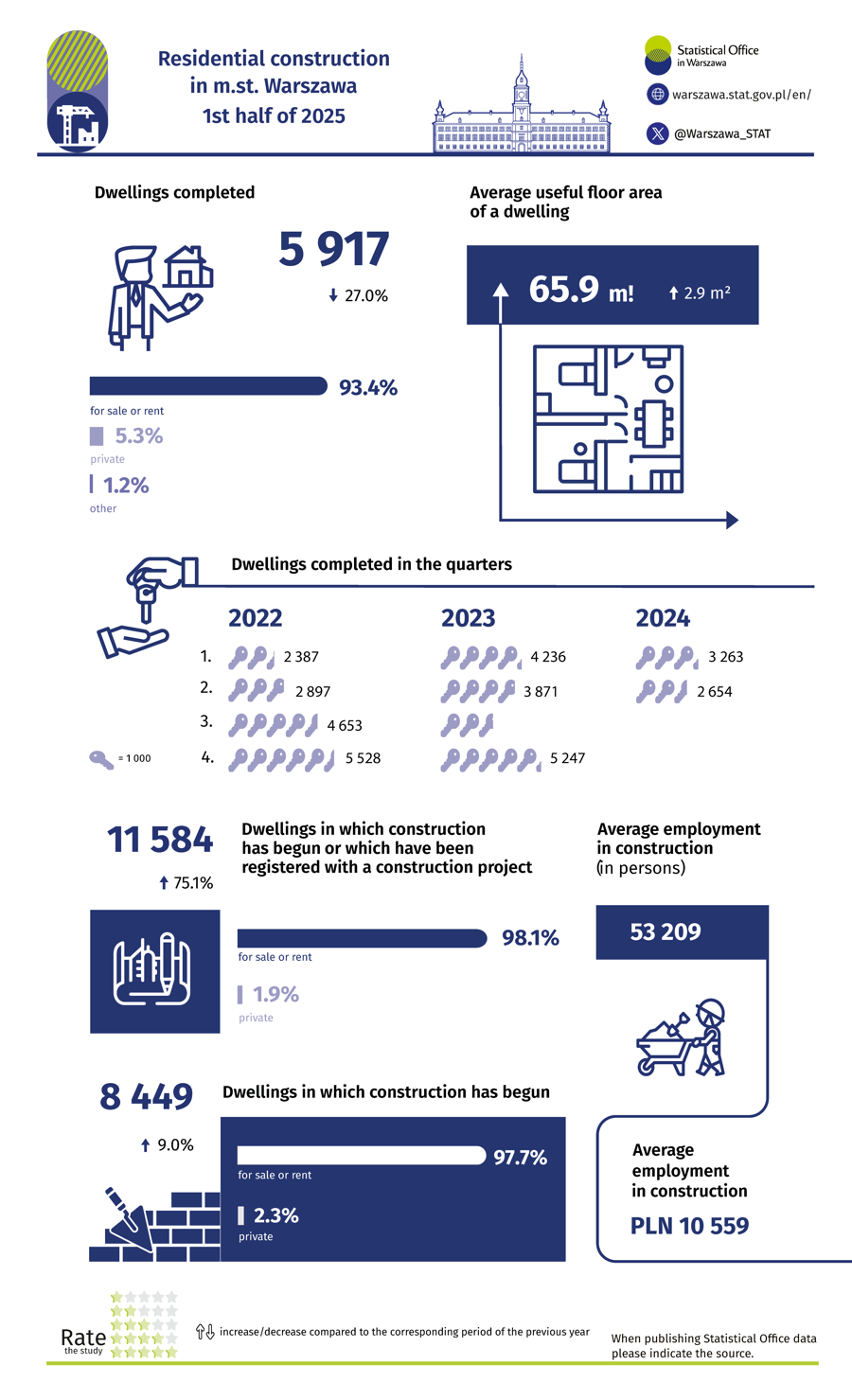 Residential construction in Warszawa 1st half of 2025 A A A 29.07.2025 Evaluate the study: Downloads Residential construction in Warszawa 1st half of 2025 1.45 MB Archive 2024 Residential construction in Warszawa in Q1 2025 Residential construction in Warszawa in 2024 Residential construction in Warszawa 1st-3rd quarter of 2024 Residential construction in Warszawa 1st half of 2024 Residential construction in Warszawa Q1 2024 2023 Residential construction in Warszawa in 2023 Residential construction in Warszawa 1-3 quarter 2023 Residential construction in Warsaw H1 2023 Residential construction in Warsaw Q1 2023 2022 Housing construction in Warsaw capital city in 2022 Housing construction in Warsaw capital city. H1 2022 2021 Housing construction in Warsaw capital city. Q1 2022 Housing construction in Warsaw capital city. Q1-Q4 2021 Housing construction in Warsaw capital city. Q1-Q3 2021 Housing construction in Warsaw capital city. H1 2021 Housing construction in Warsaw capital city. Q1 2021 2020 Housing construction in Warsaw capital city. Q1-Q4 2020 Housing construction in Warsaw capital city. Q1-Q3 2020 Housing construction in Warsaw capital city. H1 2020 Housing construction in Warsaw capital city. Q1 2020