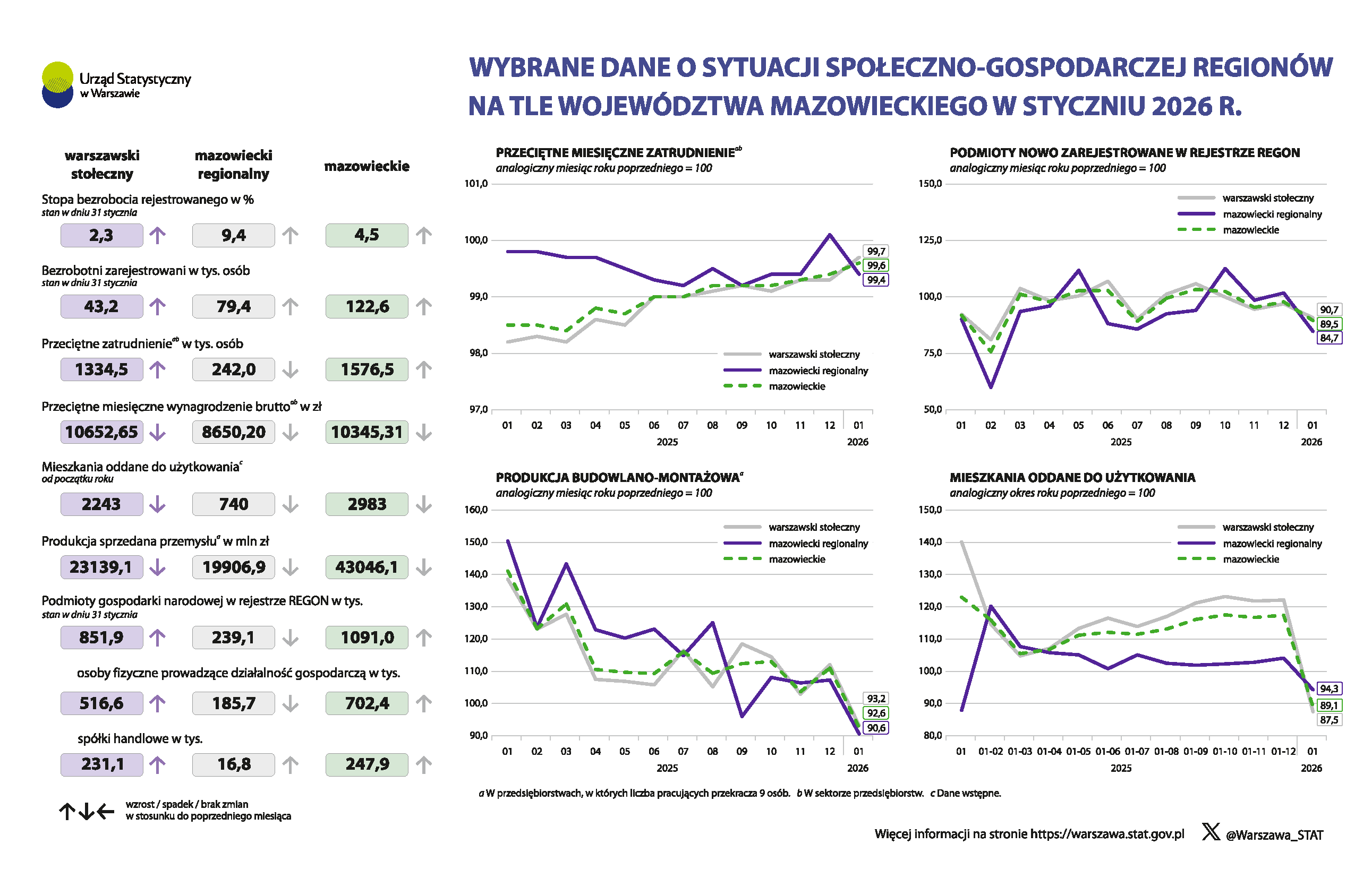 Wybrane dane o sytuacji społeczno-gospodarczej regionów na tle województwa mazowieckiego w styczniu 2025 r. A A A 27.02.2026 Pliki do pobrania Wybrane dane o sytuacji społeczno-gospodarczej regionów na tle województwa mazowieckiego w styczniu 2025 r. 1.58 MB Wybrane dane o sytuacji społeczno-gospodarczej regionów na tle województwa mazowieckiego w styczniu 2025 r. - wersja o wysokim kontraście dla niedowidzących 1.58 MB Wybrane dane o sytuacji społeczno-gospodarczej regionów na tle województwa mazowieckiego w styczniu 2025 r. - dane w formacie Excel 0.06 MB