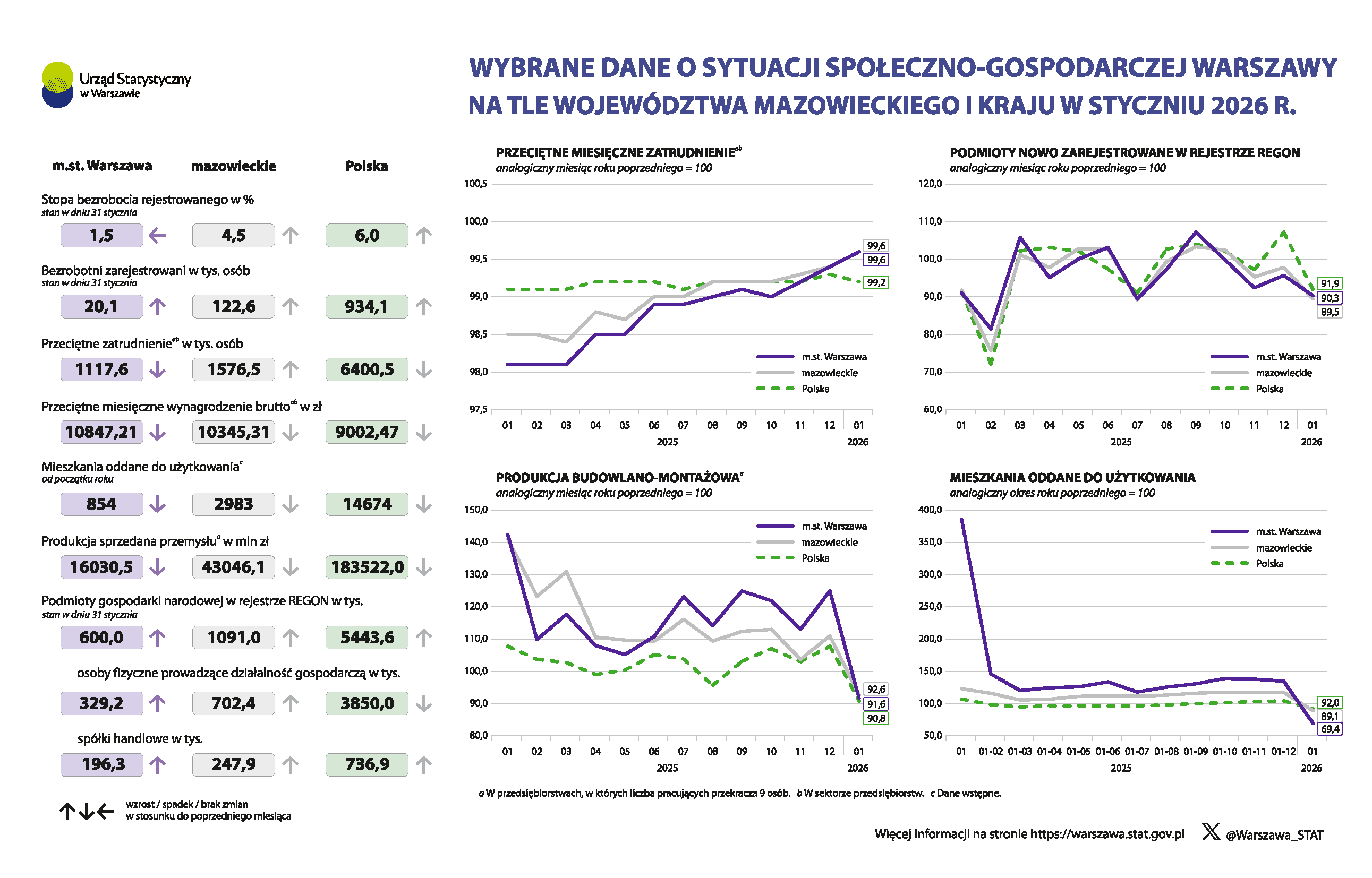 Wybrane dane o sytuacji społeczno-gospodarczej Warszawy na tle województwa mazowieckiego i kraju w styczniu 2025 r. A A A 27.02.2026 Oceń opracowanie: Pliki do pobrania Wybrane dane o sytuacji społeczno-gospodarczej Warszawy na tle województwa mazowieckiego i kraju w styczniu 2025 r. 1.57 MB Wybrane dane o sytuacji społeczno-gospodarczej Warszawy na tle województwa mazowieckiego i kraju w styczniu 2025 r. wersja o wysokim kontraście dla niedowidzących 1.57 MB Wybrane dane o sytuacji społeczno-gospodarczej Warszawy na tle województwa mazowieckiego i kraju w styczniu 2025 r. - dane w formacie Excel 0.06 MB