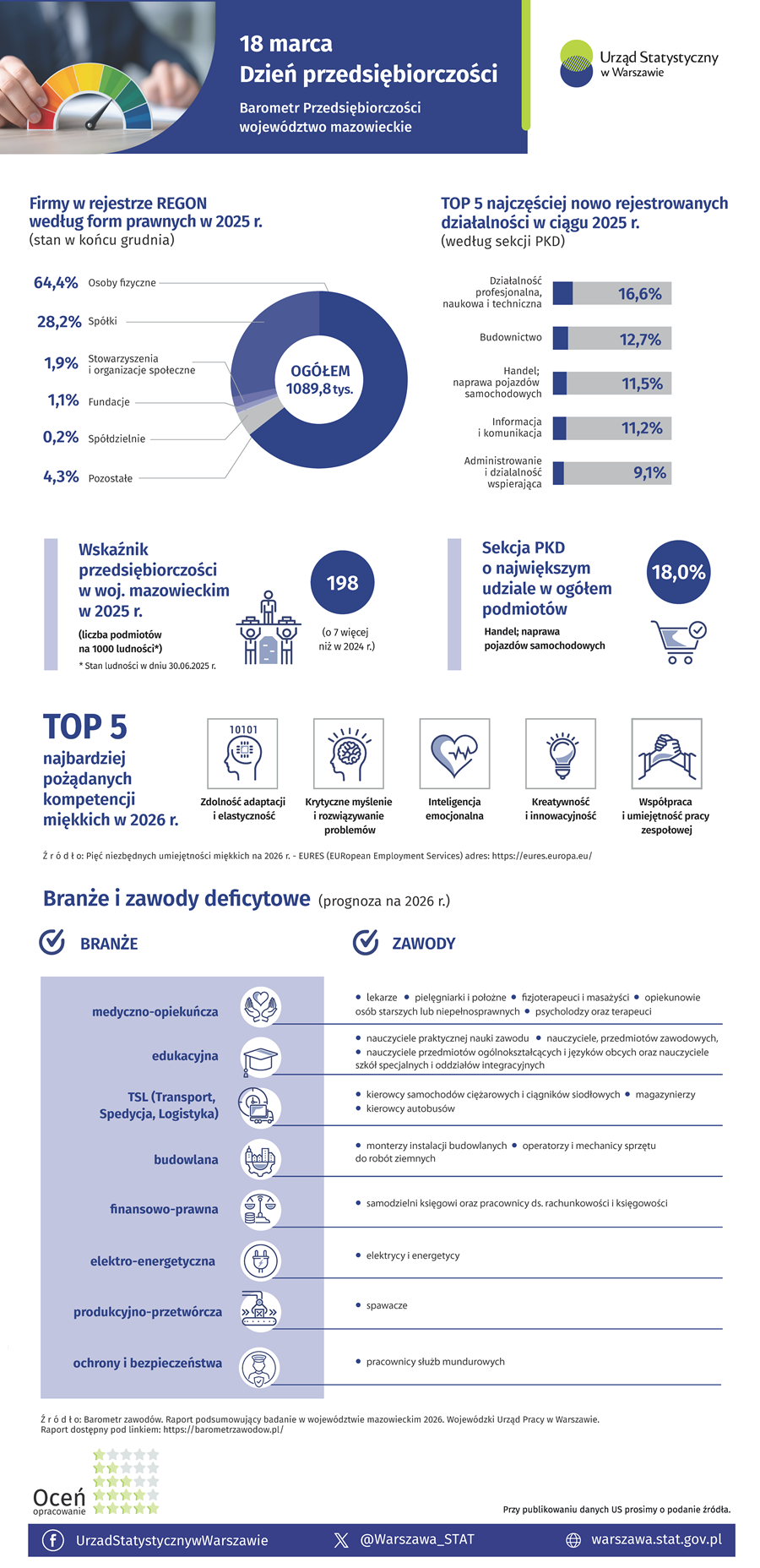 18 marca. Dzień Przedsiębiorczości - Barometr Przedsiębiorczości A A A 18.03.2026 Oceń opracowanie: Pliki do pobrania 18 marca. Dzień Przedsiębiorczości - Barometr Przedsiębiorczości 4.36 MB 18 marca. Dzień Przedsiębiorczości - Barometr Przedsiębiorczości, opis alternatywny 0.02 MB 18 marca. Dzień Przedsiębiorczości - Barometr Przedsiębiorczości, dane w formacie Excel 0.03 MB 18 marca. Dzień Przedsiębiorczości - Barometr Przedsiębiorczości, plik z audiodeskrypcją 1.65 MB Archiwum 2023 20 marca. Dzień Przedsiębiorczości - Barometr Przedsiębiorczości 20 marca. Dzień Przedsiębiorczości - Barometr Przedsiębiorczości 2022 22 marca. Dzień Przedsiębiorczości - Barometr Przedsiębiorczości
