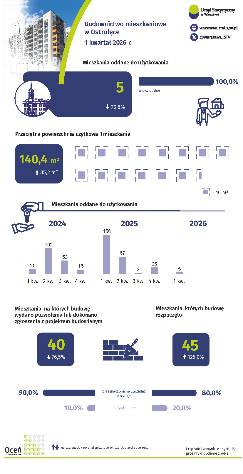 Budownictwo mieszkaniowe w Ostrołęce w 1 kwartale 2026 r. A A A 29.04.2026 Oceń opracowanie: Pliki do pobrania Budownictwo mieszkaniowe w Ostrołęce w 1 kwartale 2026 r. 1.48 MB Budownictwo mieszkaniowe w Ostrołęce w 1 kwartale 2026 r. - opis alternatywny 0.05 MB Budownictwo mieszkaniowe w Ostrołęce w 1 kwartale 2026 r. - dane w formacie Excel 0.02 MB Budownictwo mieszkaniowe w Ostrołęce w 1 kwartale 2026 r. - plik z audiodyskrypcją 0.93 MB Archiwum 2025 Budownictwo mieszkaniowe w Ostrołęce w 2025 r. Budownictwo mieszkaniowe w Ostrołęce 1-3 kwartał 2025 r. Budownictwo mieszkaniowe w Ostrołęce 1 półrocze 2025 r. Budownictwo mieszkaniowe w Ostrołęce w 1 kwartale 2025 r. 2024 Budownictwo mieszkaniowe w Ostrołęce w 2024 r. Budownictwo mieszkaniowe w Ostrołęce 1-3 kwartał 2024 r. Budownictwo mieszkaniowe w Ostrołęce 1 półrocze 2024 r. Budownictwo mieszkaniowe w Ostrołęce w 1 kwartale 2024 r. 2023 Budownictwo mieszkaniowe w Ostrołęce w 2023 r. Budownictwo mieszkaniowe w Ostrołęce 1-3 kwartał 2023 r. Budownictwo mieszkaniowe w Ostrołęce 1 półrocze 2023 r. Budownictwo mieszkaniowe w Ostrołęce w 1 kwartale 2023 r. 2022 Budownictwo mieszkaniowe w Ostrołęce w 2022 r. Budownictwo mieszkaniowe w Ostrołęce 1–3 kwartał 2022 r. Budownictwo mieszkaniowe w Ostrołęce I półrocze 2022 r. Budownictwo mieszkaniowe w Ostrołęce I kwartał 2022 r. 2021 Budownictwo mieszkaniowe w Ostrołęce I – IV kwartał 2021 r. Budownictwo mieszkaniowe w Ostrołęce I – III kwartał 2021 r. Budownictwo mieszkaniowe w Ostrołęce I półrocze 2021 r. 2020 Budownictwo mieszkaniowe w Ostrołęce I kwartał 2021 r. Budownictwo mieszkaniowe w Ostrołęce I-IV kwartał 2020 r. Budownictwo mieszkaniowe w Ostrołęce I-III kwartał 2020 r. Budownictwo mieszkaniowe w Ostrołęce w I półroczu 2020 r. Budownictwo mieszkaniowe w Ostrołęce w I kwartale 2020 r. Tagi ostrołęka mieszkania oddane do użytkowania średnia cena mieszkania