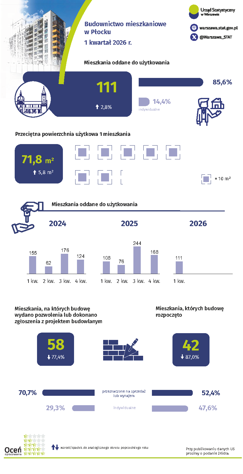 Budownictwo mieszkaniowe w Płocku w 1 kwartale 2026 r. A A A 29.04.2026 Oceń opracowanie: Pliki do pobrania Budownictwo mieszkaniowe w Płocku w 1 kwartale 2026 r. 1.48 MB Budownictwo mieszkaniowe w Płocku w 1 kwartale 2026 r. - opis alternatywny 0.05 MB Budownictwo mieszkaniowe w Płocku w 1 kwartale 2026 r. - dane do wykresów w formacie Excel 0.02 MB Budownictwo mieszkaniowe w Płocku w 1 kwartale 2026 r. - plik z audiodeskrypcją 0.94 MB Archiwum 2025 Budownictwo mieszkaniowe w Płocku w 2025 r. Budownictwo mieszkaniowe w Płocku 1-3 kwartał 2025 r. Budownictwo mieszkaniowe w Płocku 1 półrocze 2025 r. Budownictwo mieszkaniowe w Płocku w 1 kwartale 2025 r. 2024 Budownictwo mieszkaniowe w Płocku w 2024 r. Budownictwo mieszkaniowe w Płocku 1-3 kwartał 2024 r. Budownictwo mieszkaniowe w Płocku 1 półrocze 2024 r. Budownictwo mieszkaniowe w Płocku w 1 kwartale 2024 r. 2023 Budownictwo mieszkaniowe w Płocku w 2023 r. Budownictwo mieszkaniowe w Płocku 1-3 kwartał 2023 r. Budownictwo mieszkaniowe w Płocku 1 półrocze 2023 r. Budownictwo mieszkaniowe w Płocku w 1 kwartale 2023 r. 2022 Budownictwo mieszkaniowe w Płocku w 2022 r. Budownictwo mieszkaniowe w Płocku 1–3 kwartał 2022 r. Budownictwo mieszkaniowe w Płocku I półrocze 2022 r. Budownictwo mieszkaniowe w Płocku I kwartał 2022 r. 2021 Budownictwo mieszkaniowe w Płocku I – IV kwartał 2021 r. Budownictwo mieszkaniowe w Płocku I – III kwartał 2021 r. Budownictwo mieszkaniowe w Płocku I półrocze 2021 r. Budownictwo mieszkaniowe w Płocku I kwartał 2021 r. 2020 Budownictwo mieszkaniowe w Płocku I-IV kwartał 2020 r. Budownictwo mieszkaniowe w Płocku I-III kwartał 2020 r. Budownictwo mieszkaniowe w Płocku w I półroczu 2020 r. Budownictwo mieszkaniowe w Płocku w I kwartale 2020 r. Tagi płock mieszkania oddane do użytkowania średnia cena mieszkania