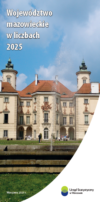 Województwo mazowieckie w liczbach 2025 A A A Data publikacji: 25.11.2025 Częstotliwość wydania: Roczna Oceń opracowanie: Pliki do pobrania Województwo mazowieckie w liczbach 2025 10.23 MB Archiwum 2024 Województwo mazowieckie w liczbach 2024 2023 Województwo mazowieckie w liczbach 2023 2022 Województwo mazowieckie w liczbach 2022 2021 Województwo mazowieckie w liczbach 2021 2020 Województwo mazowieckie w liczbach 2020 2019 Województwo mazowieckie w liczbach 2019 2018 Województwo mazowieckie w liczbach 2016 Województwo mazowieckie w liczbach 2014 Województwo mazowieckie w liczbach 2012 Województwo mazowieckie w liczbach 2010 Województwo mazowieckie w liczbach Tagi województwo mazowieckie podział administracyjny geografia ludność struktura ludności ruch naturalny migracje ludności edukacja i wychowanie rynek pracy wynagrodzenia bezrobocie rejestrowane ceny mieszkania ochrona zdrowia pomoc społeczna kultura turystyka rolnictwo przemysł budownictwo handel podmioty gospodarcze finanse publiczne ranking województw